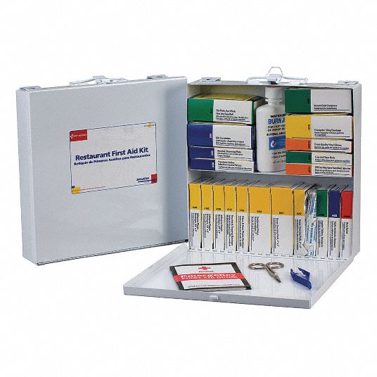 Kitchen First Aid Kits - Grainger Industrial Supply Kitchen First Aid Kits Previously Purchased First Aid Kits 2 products First-aid kits and first-aid cabinets have the supplies needed to treat minor burns, lacerations, and eye injuries for a desingated number of individuals. Specialty Cabinet, 1-10 People Served Specialty Kit, 51-75 People Served First Aid Kit Application