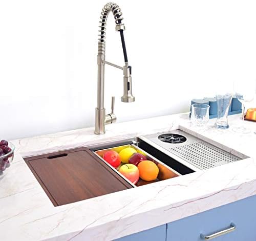 KOHLER Ballad Undermount Stainless Steel 32 in. Double Bowl … AIO Zero Radius Undermount 18G Stainless Steel 33 in. 50/50 Double Bowl Workstation Kitchen Sink with Spring Neck Faucet If you enjoy cooking like a professional If you enjoy cooking like a professional chef then this is the sink for you. Its extra-large bowl area with whole set of accessories including cutting board, colander, roll mat, bottom grid, and towel, is generously …