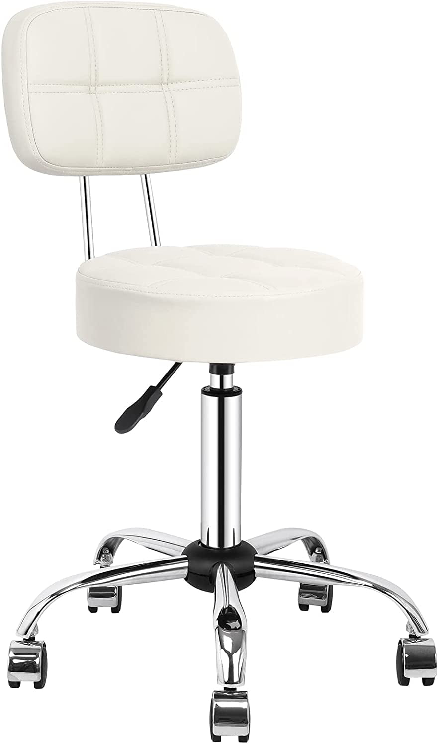 Duhome Adjustable Height Swivel Salon stools Medical Clinic Tattoo Spa Salon Stool PU Leather with Wheels White