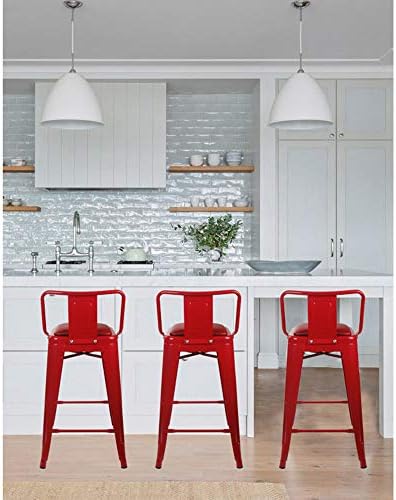 26" Metal Bar Stools Industrial Barstools Counter Height Stools for Indoor/Outdoor Barstools [Set of 4] (26", Low Back Distressed Red)