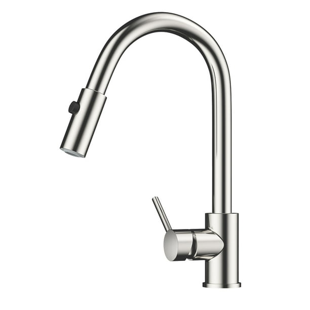 Nickel 2-Hole Compatible Kitchen Faucets at Lowes.com Brondell. Slake Universal Water Filtration Faucets Brushed Nickel Single Handle Mid-arc Kitchen Faucet. Model # BF200-BN. Find My Store. for pricing and availability. Faucet Type: Mid-arc. Runfine. Birmingham Brushed Nickel Single Handle High-arc Kitchen Faucet with Sprayer Function (Deck Plate Included) Model # RFF10E-BNPVD.