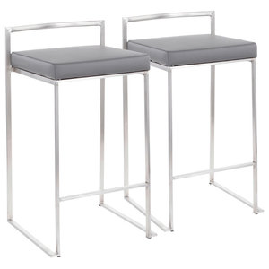 Lumisource Fuji 30 in. Stainless Steel Stackable Bar Stool with Grey Faux Leather Cushion (Set of 2) B30-FUJI GY2 - The Home Depot