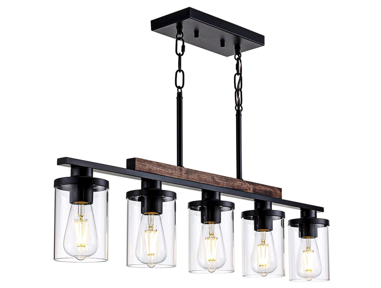 5-Light Kitchen Island Pendant Lighting, Farmhouse Dining Room Light Fixtures, 31 inch Linear Chandelier with Black & Wood Painting, ETL Listed