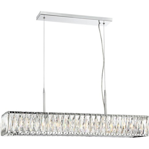 Possini Euro Design Chrome Linear Island Pendant Chandelier 33 1/2" Wide Modern Clear Crystal 5-Light Kitchen Island Dining Room