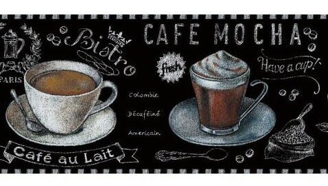 Coffee Wallpaper | Wayfair This excellent stylish retro coffee drinks cafe wallpaper border can add an instant fashionable accent to any room in your home. Overall Width - Side to Side: 7'' Application Type: Pre-pasted ... Design for kitchen cabinet, countertop, a coffee desk, furniture, room, even race car, bike surface. Overall Width - Side to Side: 24'' Square Footage ...