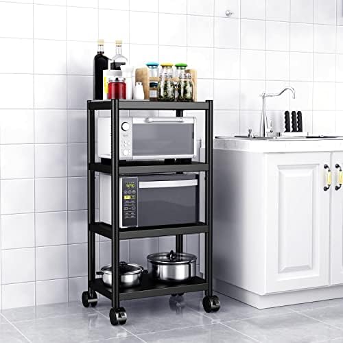Kitchen Baker's Rack on Wheels, TRUSTLIFE 4 Tier Microwave Cart on Wheels Metal Kitchen Cart Stand with Storage for Spices Pots and Pans, Adjustable & ...