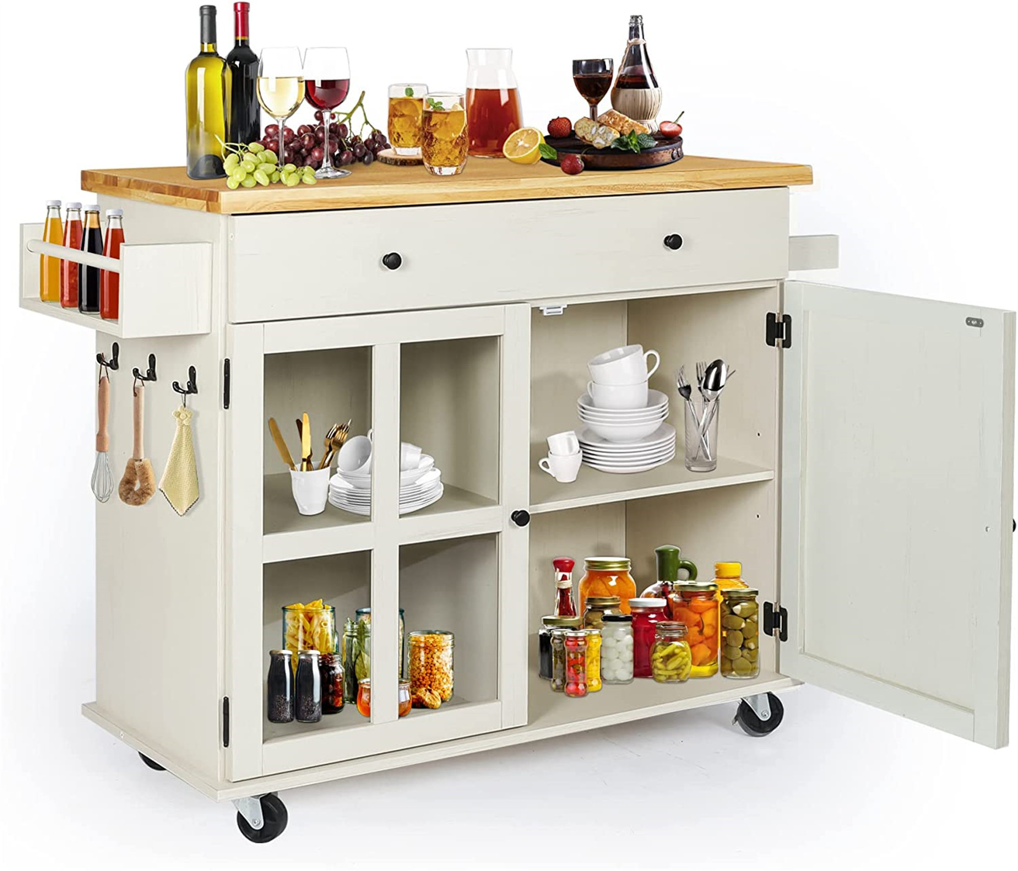 Kitchen Storage Island, Rolling Kitchen Carts Table w/Drawers&Shelf&Towel Rack, Wood Microwave Carts for Kitchen, Portable Kitchen ...