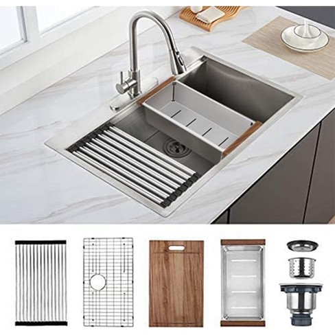 X Home 33x19 Inch Undermount Kitchen Sink with Cutting Board, Colander ... This item: X Home 33x19 Inch Undermount Kitchen Sink with Cutting Board, Colander and More, 16 Gauge Stainless Steel Workstation Sink, Seamless & Modern $26900 OWOFAN Kitchen Faucets Commercial Solid Brass Single Handle Single Lever Pull Down Sprayer Spring Kitchen Sink Faucet Brushed Nickel Grifos De Cocina 9009SN $5994